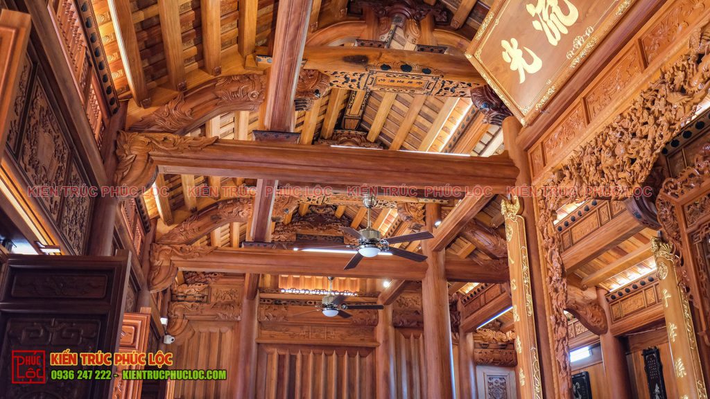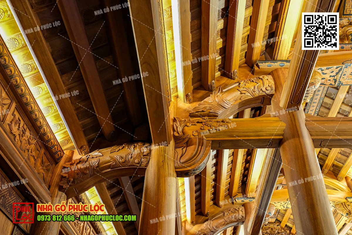 Đây là kết cấu chính, bên cạnh đó còn rất nhiều cấu kiện khác nhau để tạo nên bộ khung nhà gỗ vững chắc như: câu đầu, con rường, khung lá hạ diệp….